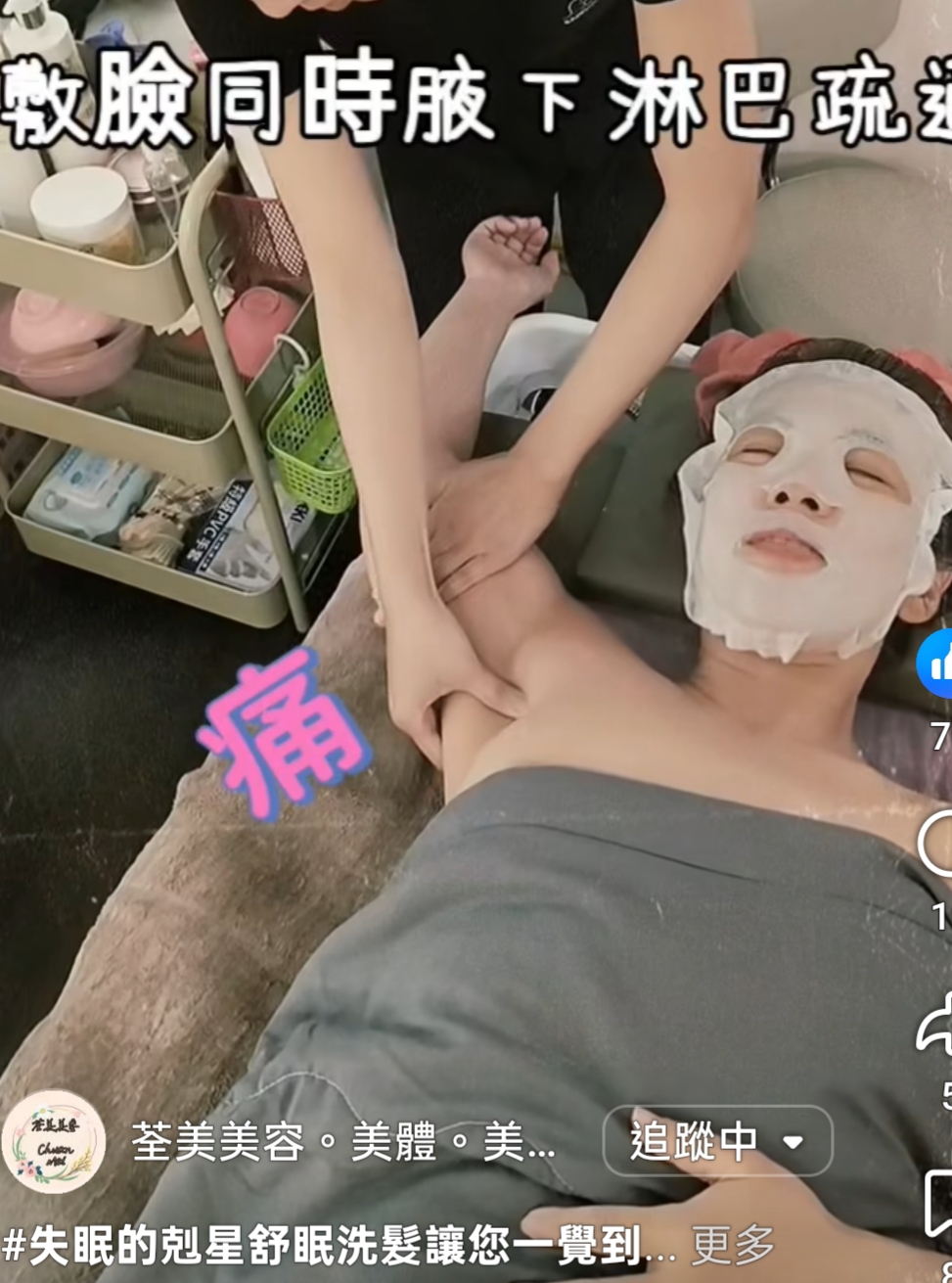 臉部卸洗、去角質、歐式按摩、保濕面膜、肩頸spa、手部按摩、頭撥筋、2次洗髮、潤絲、水循環、精華蒸氣護髮、腿部按摩、采耳小舒服、吹乾頭髮、養生茶/小點心